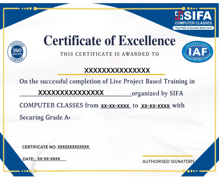 The certification issued by SIFA Computer Classes is a skill-based and practical training