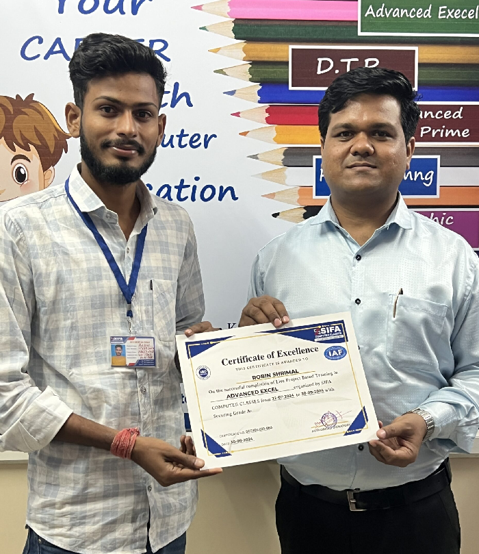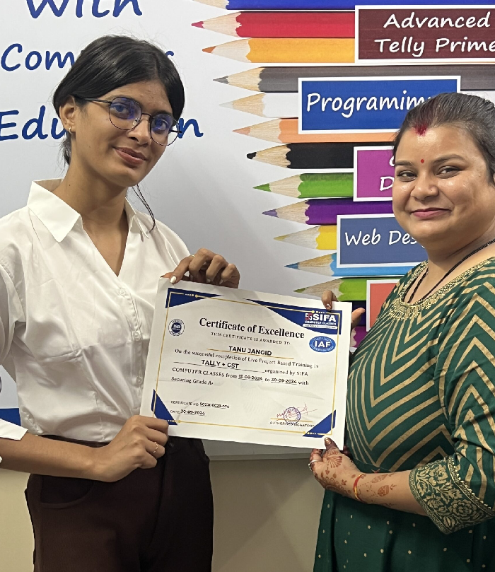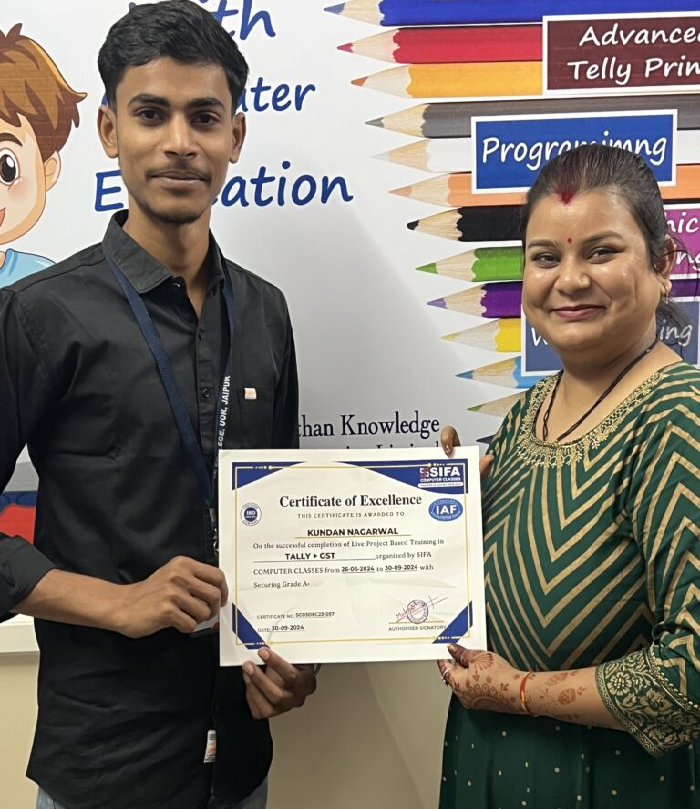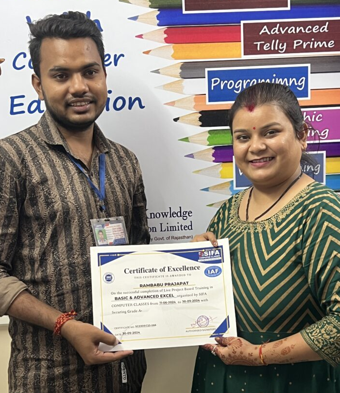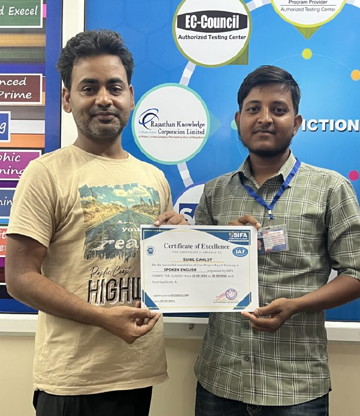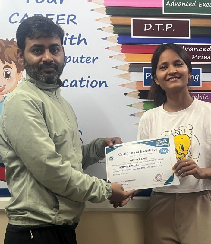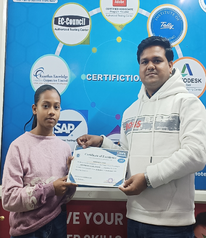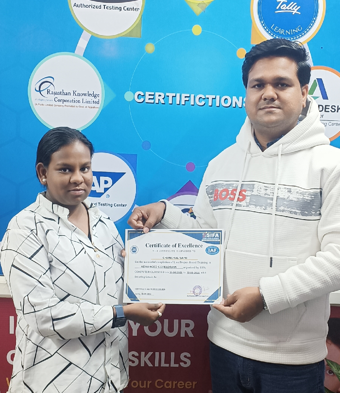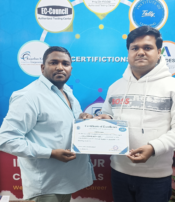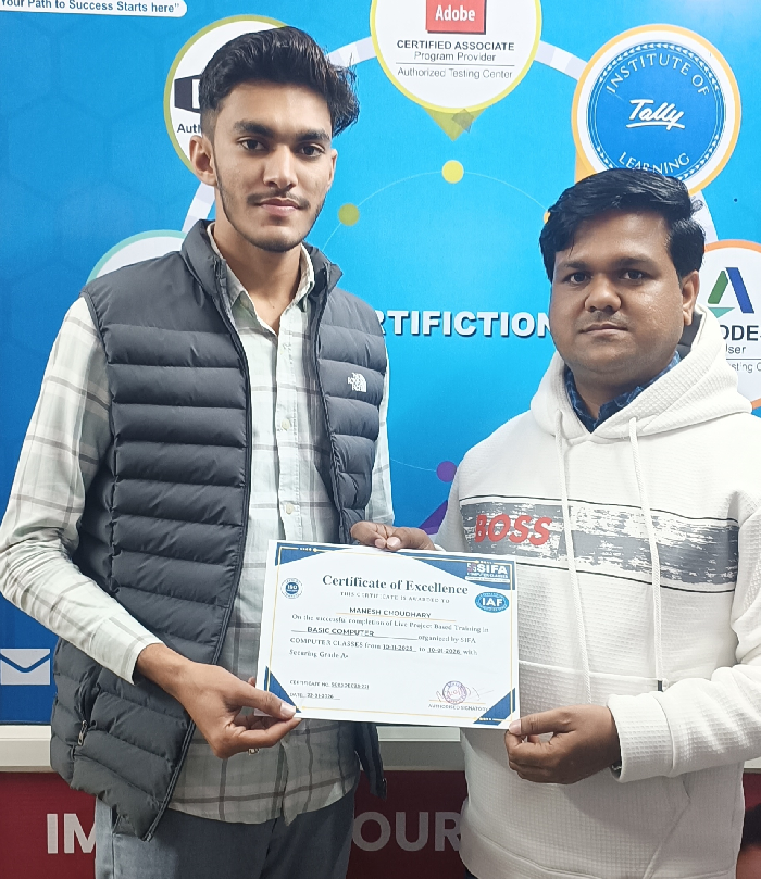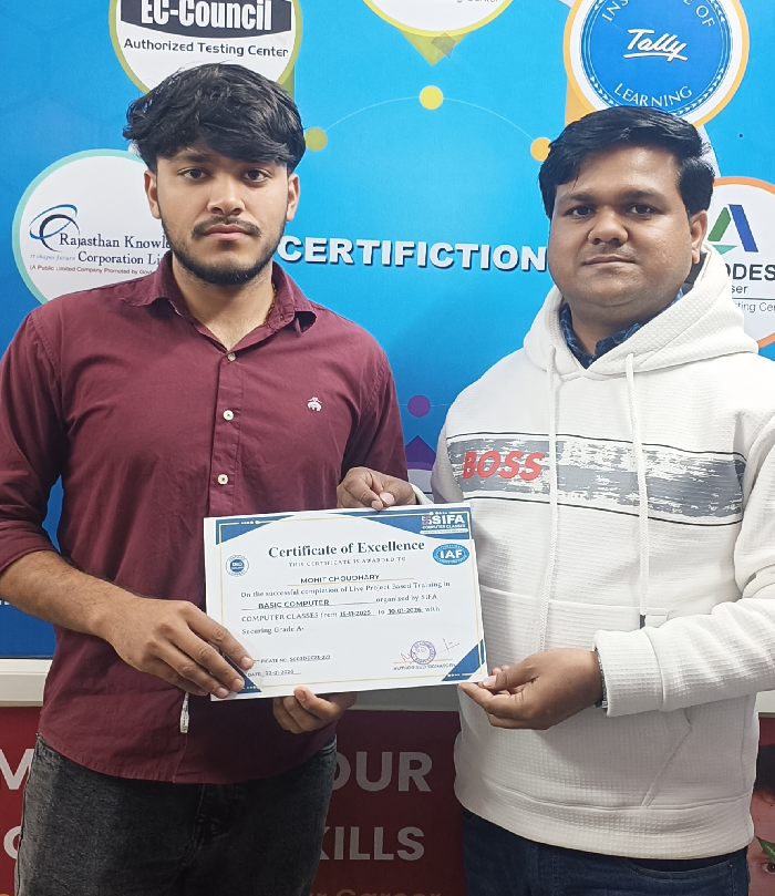 At SIFA Computer Classes, every student receives a industry-recognized certificate upon successful completion of their course. Our certification validates your skills, helps build your resume, and boosts your chances of getting jobs or freelancing work in Jaipur and across India.
